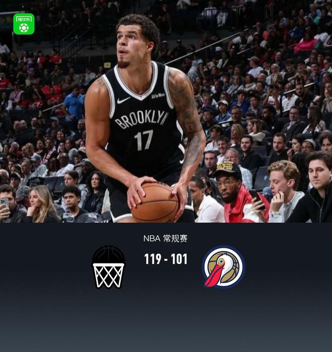 北京时间12月7日,NBA常规赛中,布鲁克林篮网队对阵新奥尔良鹈鹕队。上半场,篮网波特拿下22分,建立起近20分的领先优势。半场结束,篮网62-44落后鹈鹕。下半场鹈鹕队无力反扑。最终,篮网119-101鹈鹕。布鲁克林篮网小波特35分9篮板3助攻,达龙夏普16分3篮板3助攻,克拉克斯顿14分11篮板10助攻3盖帽;新奥尔良鹈鹕队特雷·墨菲得到23分、4个篮板和4次助攻,萨迪克·贝得到18分、6个篮板和2次助攻。首节比赛,双方前半节继续争夺比分,随后进入交替回合阶段。鹈鹕队的进攻有所加强。篮网继续反扑,将分差扩大至双倍。本节末,鹈鹕队安斯找到手感,但篮网继续保持良好的进攻反应。首节结束,篮网35-24鹈鹕。第二节比赛,双方一开始就陷入了防守拉锯战。 4分钟后,鹈鹕队得分为4-2。随后双方发现接触,开始进攻。本节末,篮网队小波特外线轰下11分扩大分差。半场战罢,篮网62-44鹈鹕。第三节,篮网队的小波特继续得分,带领球队将分差拉大30分。本节中段,鹈鹕队找到墨菲得分,将差距缩小到一分。本节结束,鹈鹕队再次连续命中三分球,将分差缩小到20分。三节结束,篮网96-75鹈鹕。第四节,双方在上半节继续有来有回。篮网队继续领先超过20分。本节后半段,篮网队以留兵、换主力的方式取得领先。鹈鹕队继续留住关键球员,但没有充分利用。分差保持在20分左右。全场比赛结束,篮网以119-101击败鹈鹕。布鲁克林篮网队球员数据:小波特得到35分、9个篮板、3次助攻、2次抢断和1次盖帽。戴隆·夏普得到16分、3个篮板、3次助攻、1次抢断、1次盖帽。克拉克斯顿得到14分、10个篮板、10次助攻和3次盖帽。新奥尔良鹈鹕队特雷·墨菲得到23分、4个篮板、4次助攻和2次抢断。萨迪克·贝得到18分、6个篮板和2次助攻。麦克文斯得到16分、2个篮板、1次助攻和1次盖帽。布鲁克林篮网首发阵容:小波特、克拉克斯顿、曼恩、克隆尼、叶戈尔·戴明;新奥尔良鹈鹕队:特雷·墨菲、萨迪克·贝、麦高文斯、菲尔斯、德里克·奎因。