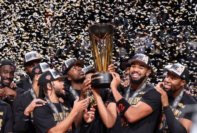 北京时间12月17日,NBA杯决赛结束。尼克斯队以124-113击败马刺队,第三次夺得NBA杯冠军。本场比赛,两队陷入拉锯战,分差始终没有拉开。上半场热刺领先2分。下半场,马刺队依靠冲击占据主动,一度领先11分。不过末节尼克斯猛烈反击扭转局势,最终锁定胜局。本场比赛,文亚马依然是替补出场。两队展开了一场拉锯战。进攻端,他们有来有回,分差始终没有拉开。马刺一度拉大分差,但尼克斯很快追上。下半场,热刺表现出了更好的热情。文班亚马也开始连续拿分,成功拉大分差,一度领先11分。然而进入末节,马刺突然失去了手感。尼克斯队利用进攻机会扭转局势,顶住了马刺队的反扑,成功夺冠。这是尼克斯自1973年以来第二座总冠军奖杯,上一次夺得NBA总冠军,这次夺得NBA杯,也是一个好的开始。哪怕只是一个NBA杯冠军,尼克斯也会很高兴。毕竟他们对于冠军还是非常渴望的。这次他们凭借最后一节的爆发赢得了冠军。他们单节发起35-19的攻势,赢下16分完成逆转。布伦森这次表现依然不错,27投11中,得到25分4篮板8助攻,全队最高正负值+15。赛后,他毫无疑问当选本届NBA杯MVP。尽管阿奴诺比在总决赛中拿下28分9篮板,但布伦森在整个晋级过程中的表现更加出色。在后垫中接受采访时,布伦森也感谢了自己的队友。没有他们,就没有冠军。文班亚马这次没能延续上一场淘汰雷霆的魔力。第三季度短暂爆发,最后季度势头未能持续。他17投7中拿下18分6篮板,但正负值-18是全队最差的。虽然这次没能夺冠,但是热刺的未来非常光明。 NBA榜眼秀哈珀三分球7中5拿下21分7篮板,卡斯尔15分12助攻,瓦塞尔12分。经历了这次决赛,我相信他们成长得更快。